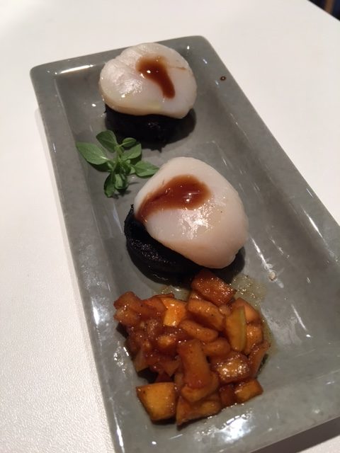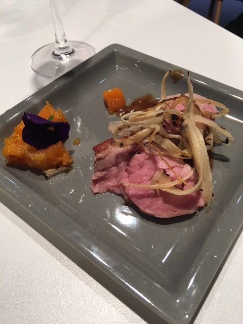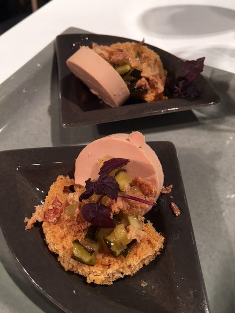 Toast au foie gras et chutney de courgettes, boudin noir et Saint-Jacques, soupe de poires, porc cuit à basse température et sabayon aux cerises étaient au menu.