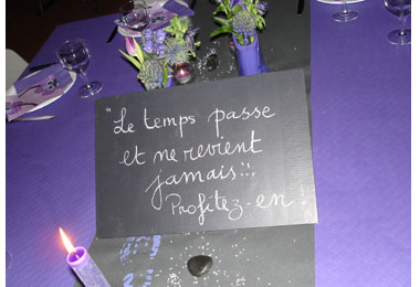 Sur des ardoises, une phrase : « Le temps passe et ne revient jamais… Profitez-en ! »