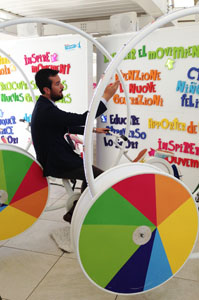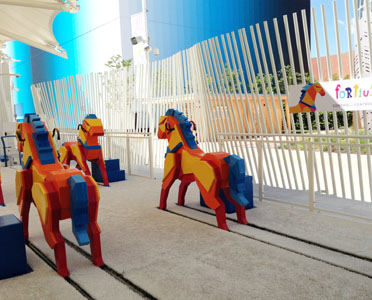 Les enfants sont invités à découvrir l’espace avec leurs parents et à essayer les différentes attractions colorées proposées.