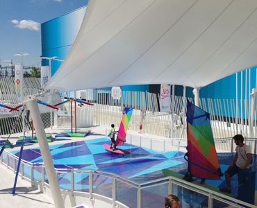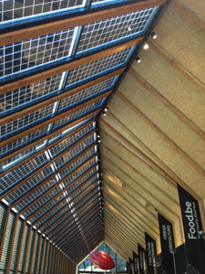Il accueille entre 10 000 et 11 000 visiteurs par jour. Sur la gauche, avant l’entrée, une éolienne verticale fournit l’électricité. Des panneaux de verre photovoltaïques composent le toit de l’entrée.