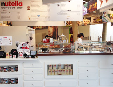Ce bar propose des recettes à base de Nutella et des produits brandés par la marque.