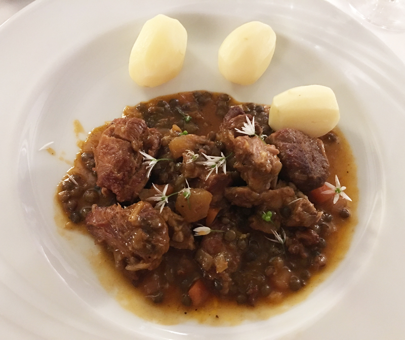 - Un parfumé ragoût d’agneau avec quelques lentilles, la viande vient de chez Boucher du village. C’était délicieux mais le plat manquait peut-être d’un peu de couleurs et donc d’un peu de légumes.