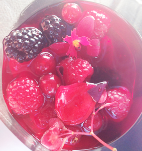 Fruits rouges avec des fleurs d’hibiscus Une création de David Martin, La Paix* Servi avec un Vivalto Lungo