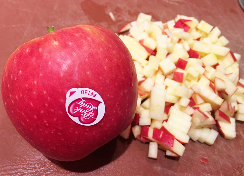 Coupez l’autre moitié des pommes en petits dés, et réservez.