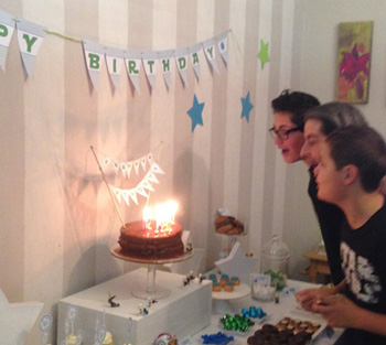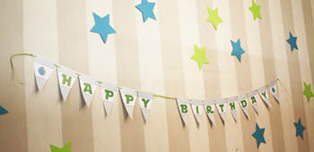 Pour habiller l’arrière du buffet, rien de plus simple qu’une bannière Happy Birthday et quelques étoiles découpées dans du papier colorée.