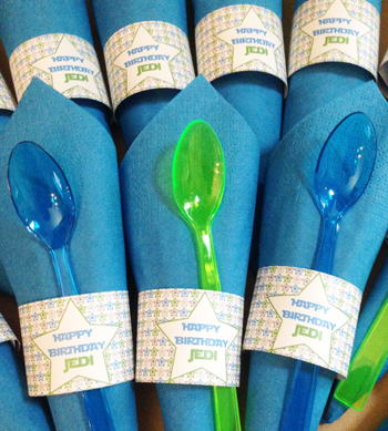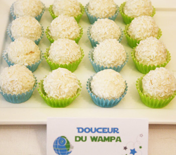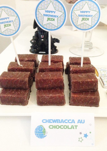 Les boys se sont amusés à renommer toutes les gourmandises, ici des Kings à la menthe deviennent ‘L’attaque des scones’, les truffes deviennent des ‘Ewok Treats’,…
